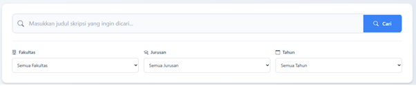 Setelah berhasil login, kamu akan disambut dengan kotak pencarian. Di sinilah petualanganmu dimulai! Ketikkan judul skripsi yang kamu cari. Kalau mau lebih spesifik, manfaatkan fitur filter yang tersedia.