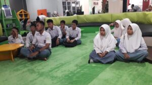 Setelah diputarkan video profil perpustakaan sebagai pengenalan awal tentang profil perpustakaan, selanjutnya meraka diajak keliling ke Lt.2 dan 3 dengan dipandu oleh temean-teman Komunitas pecinta pustaka(kocipus)  untuk dikenalkan tentang layanan yang ada di lt.2 dan 3. Pada sesi ini juga mereka diberi tugas oleh guru pendampinya dengan merisume buku-buku agama. Mereka sangat semangat dan atusias mengikuti kegiatan tersebut.